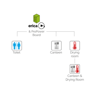 > Erica enabled them to turn off power to drying rooms and canteens when not in use over a certain period of time, all from their desktop.