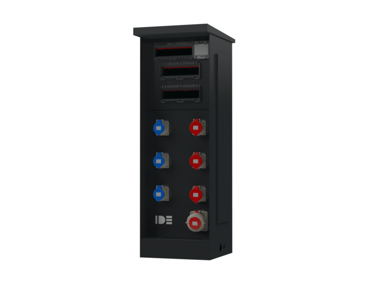 A fixed power solution which can be positioned into the ground to safely connect cranes and other lifting equipment to a mains power supply. As well as being installed on-site to connect a wide range of applications safely to a mains power supply.