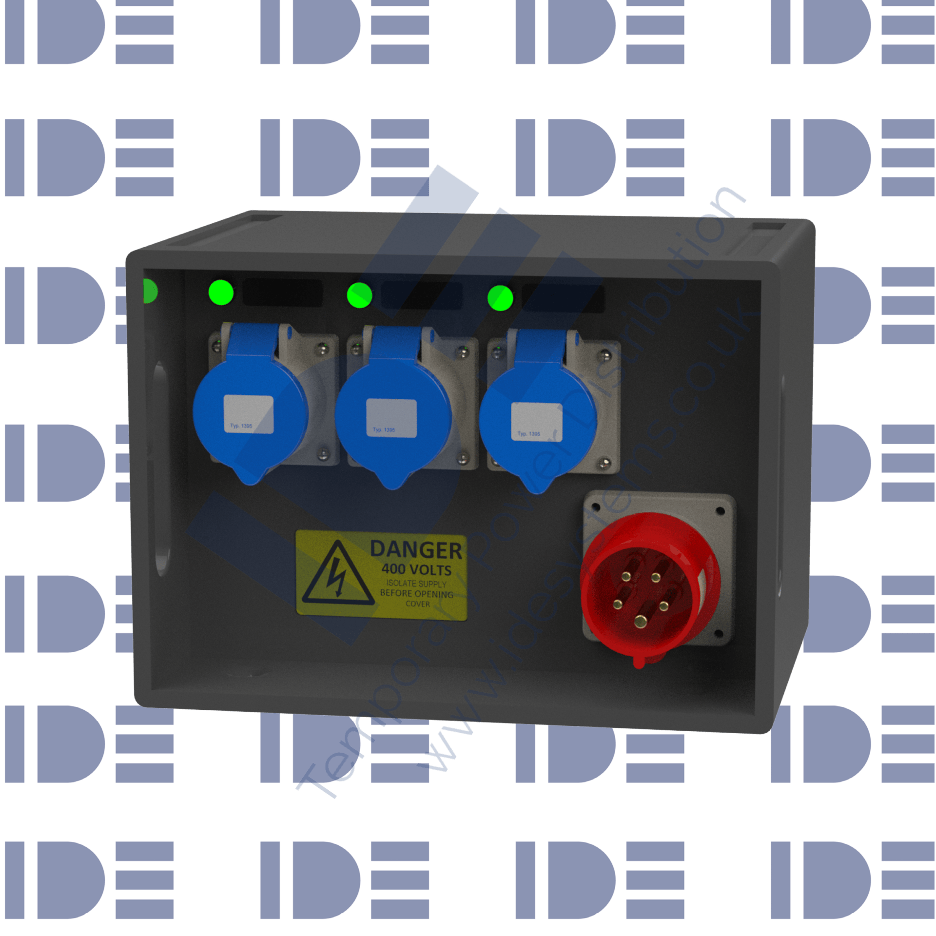 - Outgoing: 3 x 32A 230V 1P+N+E IP44 Pnl Mnt Skt. Protection: 3 x 32A 2 Pole 30mA RCBO